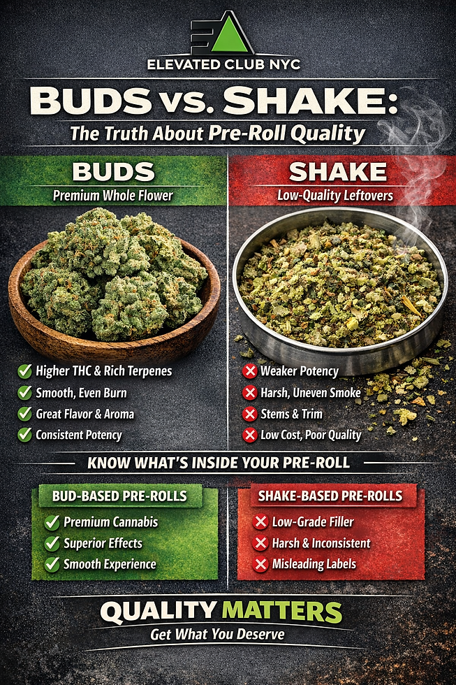Buds vs. Shake: The Truth About Pre-Roll Quality By Justice | Elevated Club NYC